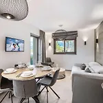 Chalet Des Cerisiers - Luxe Et Parking A Courchevel Le Praz offers convenient self-catering facilities, including an equipped kitchenette with an electric kettle, a refrigerator, and kitchenware. The accommodation is around 900 metres from Le Praz cable car station. Along with access to a golf playground, the property also offers snow skiing for active guests. A terrace is a great place to dine and enjoy a drink.